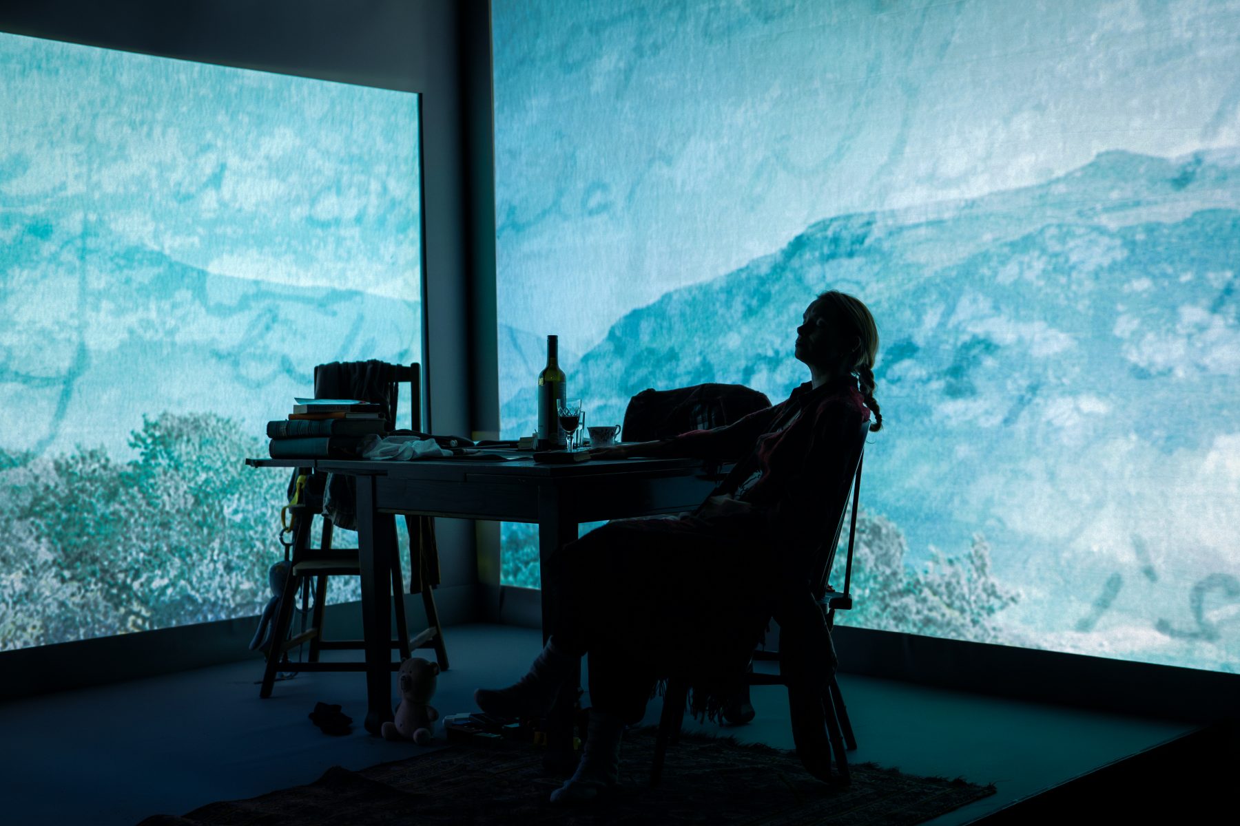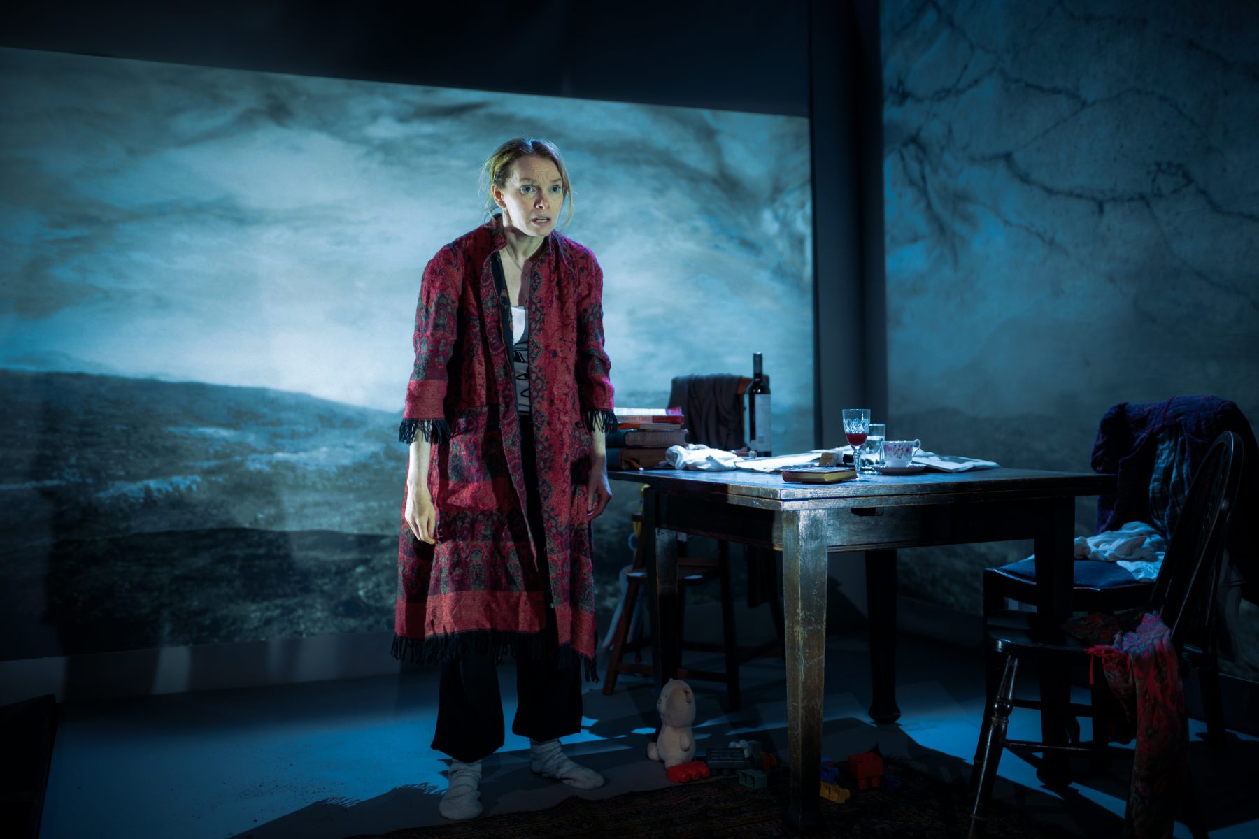 “Visually, the production is striking. Hugo Dodsworth’s set unfolds gradually, revealing new layers as Anna’s psyche fractures further. What begins as a sparse domestic space becomes something more fluid and uncannier, a stage that seems to shift under our feet. Projections are used with intelligence, sometimes evoking the island’s rugged beauty, sometimes intruding with disorienting force […] the landscape itself becomes a character, its silence and remoteness pressing down on Anna as much as her sleepless nights.” – Dominic Corr, Corr Blimey